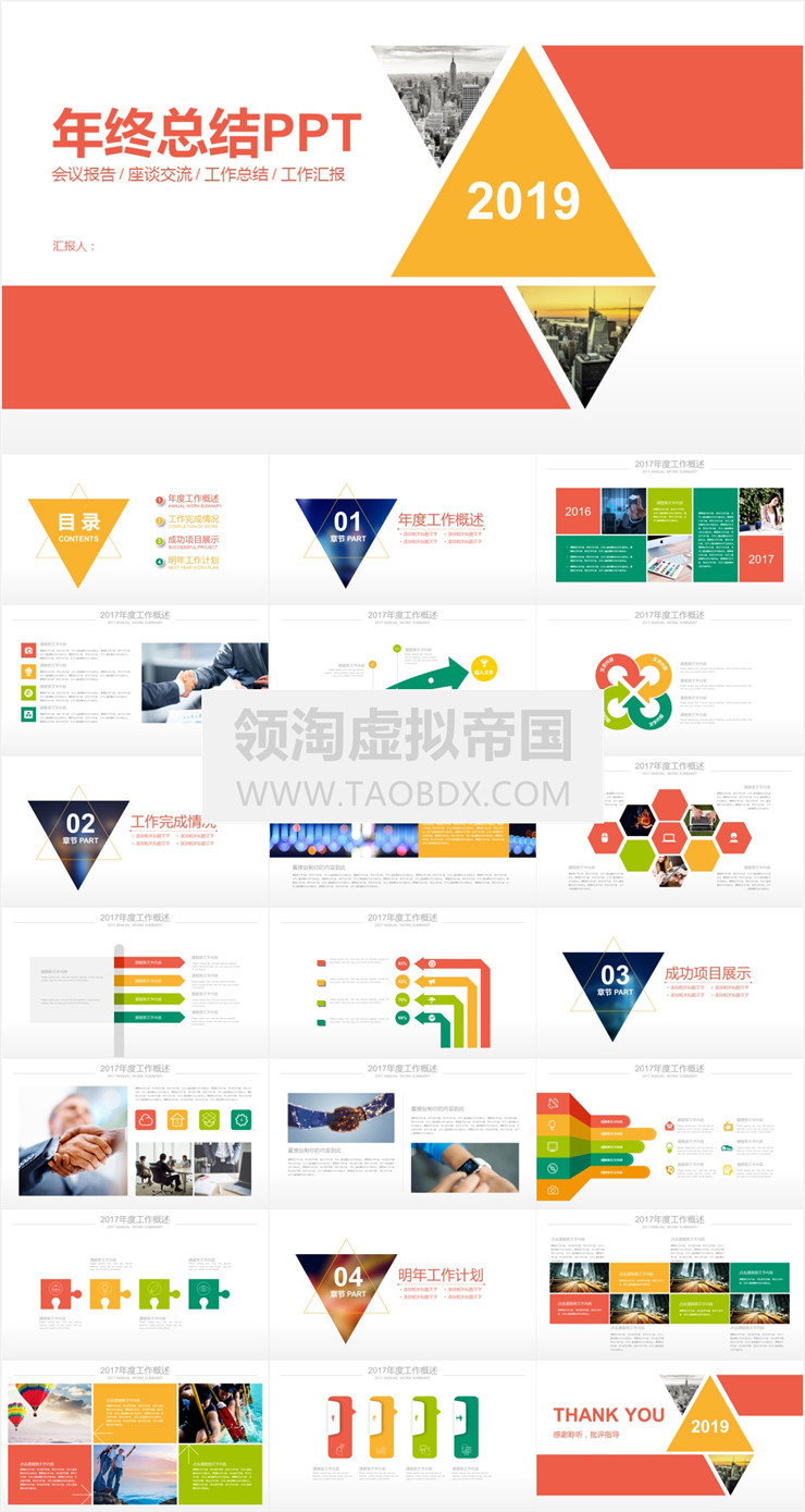 P014-ppt模板年终汇报商务动态工作总结年度日常新年计划述职报告简约